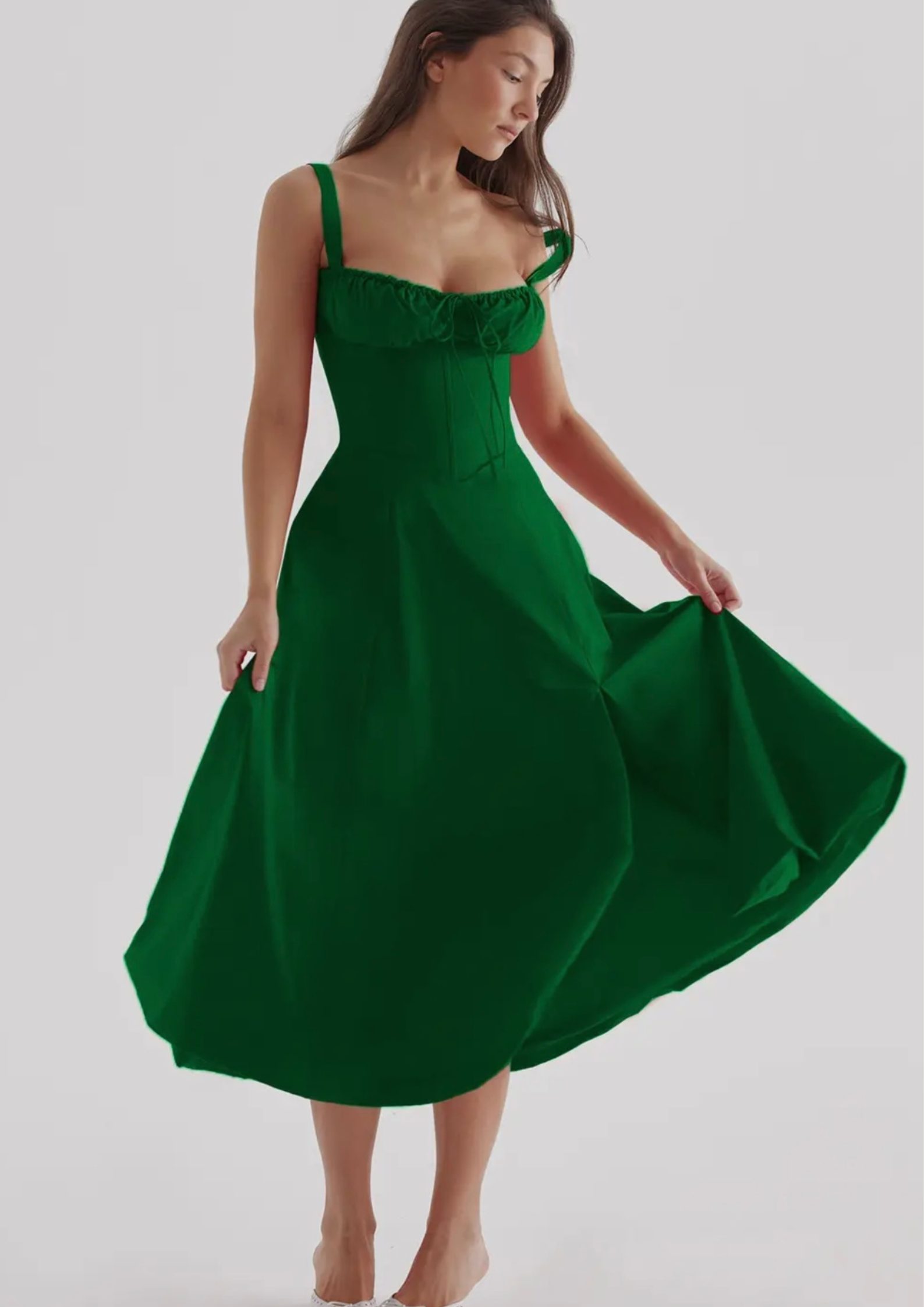 Sweetkama Ladies Two Shoulder Solid Color Daily Midi Dress